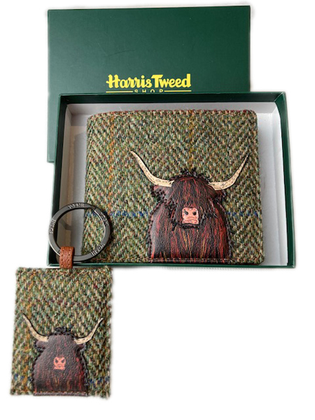 Hairy Cow Harris Tweed Folding Wallet and Key Ring & Leather